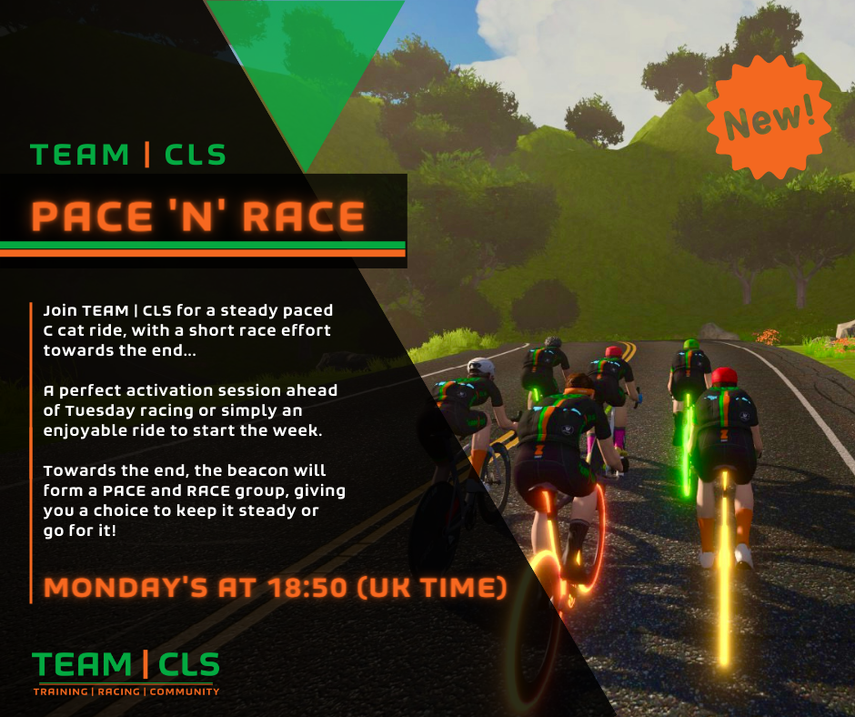 An ideal activation ride ahead of Tuesday racing or simply a great ride to start the week. We PACE, and towards the end, a RACE group will form for a blast to the finish.